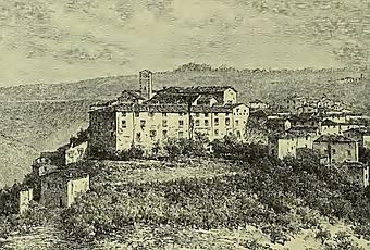 I dintorni di Pontassieve hanno tutta l'apparenza della fertilità. Se le ville sono rare, vi pullulano invece gli ulivi e le vigne. Questa monotonia nella ricchezza comincia a stancare, quando, dopo aver camminato a lungo tra il fiume e le colline più o meno alte, coronate sulla sommità di cipressi, il cui nero fogliame spicca sull'azzurro dell'orizzonte, si giunge finalmente ai piedi d'una montagna seria, imponente, ornata quasi a mezza costa da una torre, che serve oggi quale dimora ad una famiglia di contadini.