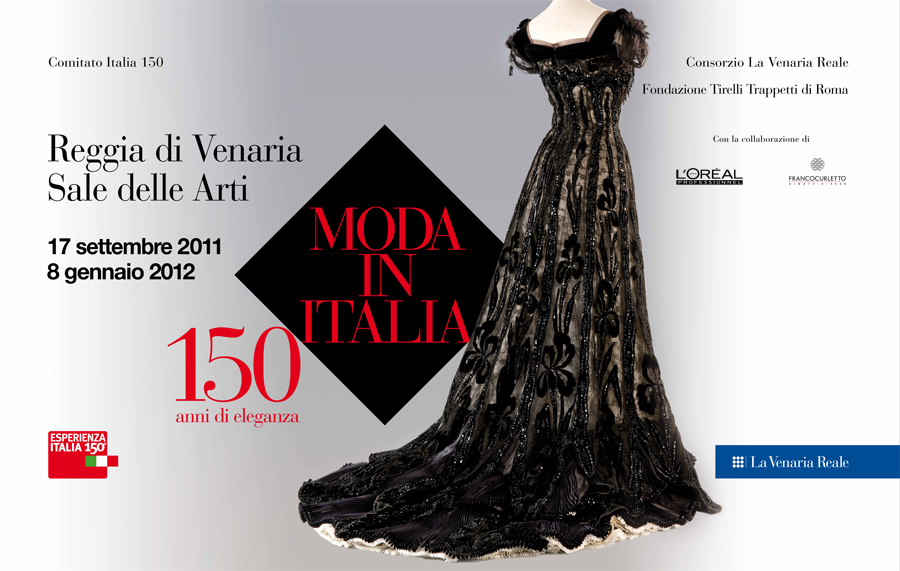 Nelle Sale delle Arti della Reggia di Venaria, dal 17 settembre all’8 gennaio 2012, è ospite un’inedita e irripetibile mostra sulla storia della moda italiana. Moda in Italia. 150 anni di eleganza, è l’evento espositivo che celebra la moda come uno degli elementi principali dell’identità dell’Italia contemporanea e come simbolo nel mondo della sua creatività, eleganza, stile e capacità industriale.