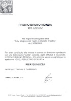 Il nostro "Telechiodimartello" Pierre ha infatti vinto, meritatamente, la XIV edizione del "Premio Bruno Monda" per la migliore scenografia del nostro ultimo spettacolo. Complimenti al nostro scenografo e, come sottolineato dallo stesso all'atto del ritiro del premio, a tutti quelli che hanno collaborato con lui.