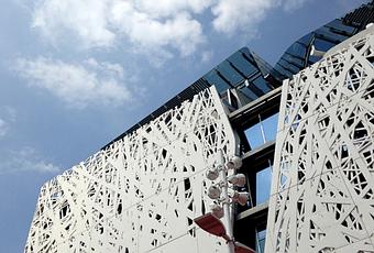 Gran Bretagna: un'altra idea concettuale sulla tematica della conservazione delle api, tema caldo dell'università di Nottingham. La struttura in metallo rappresenta un alveare giganteimmerso nel verde percorso che le api fanno dall'impollinazione all'alveare stesso.