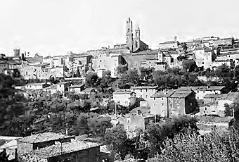 Al di là di quelle mura smantellate dal Medici si distende in semicerchio la città che occupa tutto un breve altipiano e scende alquanto giù per la china opposta distendendovi le sue casette bianche come lembo di tovaglia ricadente da una tavola.