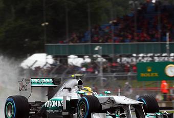 Di Resta apre la fila dei piloti seguito da Kimi Raikkonen. Webber sale in testa alla classifica, ma Rosberg lo scalza prima dell'arrivo di Hamilton che con 1:29.607 è in pole. Il boato del pubblico è impressionante.