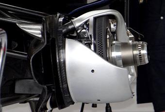 Il condotto come si vede dalla foto è stato ancorato al porta-mozzo non risultando così una parte in movimento. Ricordiamo infatti che un sistema analogo era stato già introdotto lo scorso anno dalla Red-Bull ma fu poi bocciato dalla federazione in quanto i fori d’espulsione dell’aria non erano fissi ma rotanti e vennero quindi vietati. Il regolamento infatti, per una ragione di sicurezza, vieta parti in movimento su sistemi delicati come quello frenante. Nel caso della Williams invece il tutto e statico rispetta in pieno le norme tecniche.