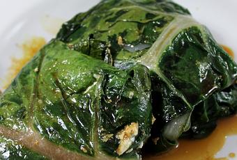 - Disporre seguendo il link della vecchia ricetta il ripieno alla base delle foglie e chiudere creando un fagottino ben sigillato.