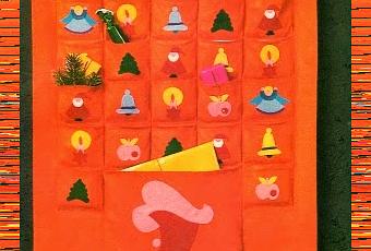 Un originalissimo calendario dell'Avvento con tante tasche adatte per contenere piccoli doni, uno per ogni giorno del mese di Dicembre fino alla vigilia di Natale. E' un'idea unica e sarà sicuramente apprezzato come regalo di Natale, soprattutto dai più piccoli che si divertiranno a scoprire i regali nascosti nelle tasche. E' un regalo che si può confezionare in poco tempo. Infatti i motivi delle tasche sono realizzati in stoffa adesiva e si applicano senza bisogno di cuciture.