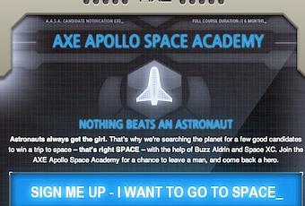 In un'inedita campagna promozionale, Axe selezionerà 22 fan della marca e li spedirà nello spazio (in realtà si tratterà di un volo suborbitale, ma fa lo stesso) a bordo della futura navetta di uno dei nuovi players nel mercato dell'astronautica turistica (nello specifico, XCOR).