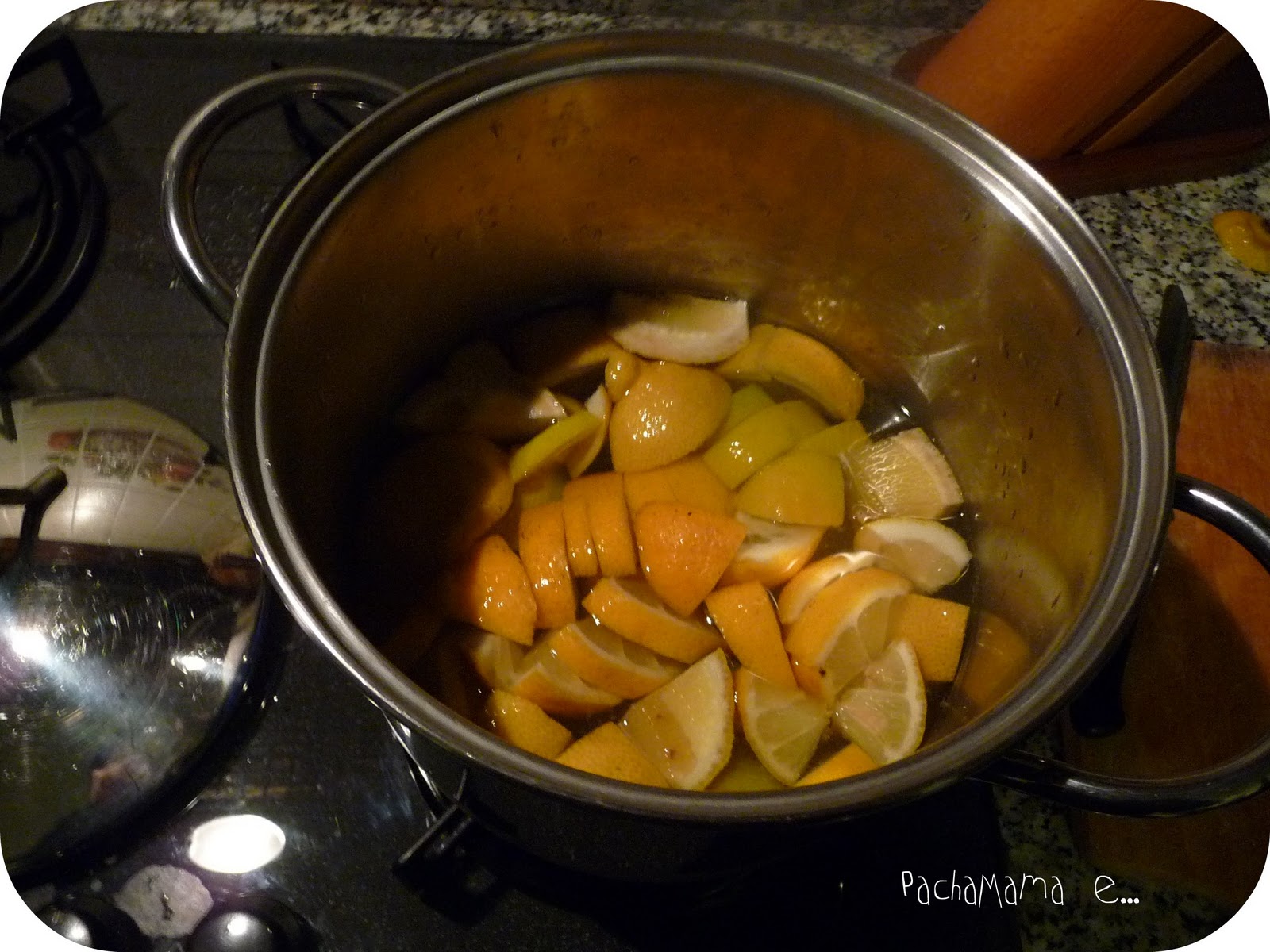 Tagliare i limoni a pezzi aggiungi tutti gli ingredienti e fai bollire per un quarto d'ora. Far raffreddare e frullare tutto molto bene poi passare tutto con un colino fine.Volendo la signora mi diceva che potevo aggiungere qualche goccia di detersivo piatti, ma io non l'ho fatto.