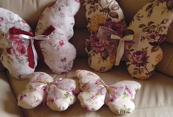 Farfalle a gogò,perché le ama tantissimo,ed in particolar modo cuscini in stoffa fiorata.