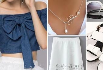 Ho tempo però per girovagare per i siti di moda, mi rilassa e mi diverte molto. Oggi sono andata da Lucluc e ho visto che c'è una vetrina dedicata al denim così ho scelto un top carinissimo che, malgrado sia in denim , trovo romantico e carino dal pomeriggio in poi, una gonna non troppo corta ma con intarsi che lasciano intravvedere le gambe, una paio di sandali comodi ma eleganti, un girocollo semplice e un paio di occhiali un po' particolari in tinta con la gonna.