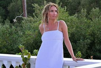 A vedere queste foto vengono i brividi..... Be', si, un po' per l'aspetto del soggetto, ma soprattutto per la veste che indossa, decisamente estiva. Devo pagare lo scotto per aver rotto le scatole chiesto con delicatezza al mio fidanzato di scattarmi queste foto, visto la bella location del Panorama Studios dove abbiamo alloggiato per il nostro soggiorno sull'isola di Zacinto. Pensate però che questo look può essere ancora sfoggiato se si sceglie di trascorrere le prossime vacanze in qualche paese sito all'interno della fascia dei tropici. Già.E mentre fuori si sta scatenando un freddo temporale, la sottoscritta vi delizia con questa botta d'estate, un look da vacanza greca, composto da un delizioso vestituzzo acquistato presso il local market di Savona, all'interessante prezzo di ben 6 euri! Un vestitino bianco di cotone, che definirei easy & pretty, con una graziosa decorazione in pizzo san gallo sul bordo inferiore: insomma pronte per uscire in un attimo, per stupire con effetti speciali chi è sempre abituato ad aspettarci per ore. Visto l'atmosfera vacanziera, l'ho abbinato a delle pratiche ciabattine impreziosite da swarovski e qualche gingillo, tra cui un anello con l'andros, in tema con la vacanza, acquistato un sacco di anni fa a Katakolon.