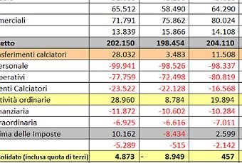 Anche l'incidenza del "Costo del Lavoro" (costo del personale + ammortamenti calciatori) sul fatturato netto è "virtuosa, perché par al 61%.