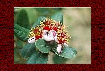 La feijoa, o acca sellowiana è un grosso e affascinante arbusto sempreverde che ha origine nell'America meridionale, soprattutto in Brasile. Appartiene alla famiglia delle Mirtacee ed è largamente conosciuta anche con il nome di guaiabo del Brasile. Attualmente la sua coltivazione è molto diffusa in California, ma molti esemplari sono coltivati anche nel nostro paese, specialmente in quelle regioni italiane che presentano un clima tipicamente mediterraneo. E' utilizzata generalmente come pianta da giardino e il suo valore ornamentale è particolarmente considerato per la bellezza del suo fogliame e dei suoi fiori , molto particolari per i loro petali candidi, o rossi, e carnosi. La feijoa sellowiana presenta una chioma espansa ed una taglia che a sviluppo completo arriva a una misura di circa 4 metri di altezza e 4 metri di larghezza. La sua vita non è lunghissima: è stimata tra i 50 e i 70 anni. Nonostante la sua origine e la sua diffusione in zone a clima temperato, grazie alle sua rusticità il guaiabo del Brasile resiste molto bene anche a temperature rigide, anche fino a dieci gradi sotto zero, purché soltanto per brevi periodi. Con un clima tanto rigido è però difficile che crescano e giungano alla giusta maturazione i buoni frutti della pianta che, per il loro opportuno sviluppo hanno bisogno di una temperatura calda in estate e in autunno, stagione in cui maturano, precisamente nel periodo che va da ottobre a novembre.Foglie, fiori, frutti