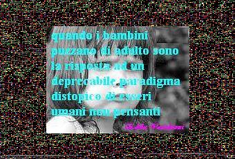 Quando s’inizia a crescere se al giovane gli sono stati insegnati i valori come la moralità, il rispetto di sé e degli altri, l’amore, l’onestà, la dignità prima o poi riuscirà a tirarli fuori. Talvolta per stimolare le menti giovanili è sufficiente un bel film un cartone animato… ma ahimè l’immagine che si offre loro attualmente come da sempre è sesso depravato ma non emancipato, furberie di ogni sorta ma non intelligenti soluzioni…