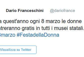 di Rina Brundu. Il governo Renzi sembrerebbe non avere ancora terminato il suo lavoro in materia di diritti “incivili”: finito il mercimonio politico a danno degli omosessuali è venuto il tempo di dedicarsi alle donne. Del resto… è giusto, si stanno avvicinando quei giorni ed è sempre meglio farsi trovare preparati. Ecco dunque un tampax… pardon, un tweet di Dario Franceschini, Ministro della Cultura (o similare), che informa sul come ogni esemplare della specie protetta delle “femmine” il prossimo 8 marzo (perché non il 9 che fa più cool? È finanche divisibile per tre…) potrà entrare gratis nei musei statali. Non è specificato se nell’occasione tali esemplari dovranno fare la pipì prima o se dovranno entrare accompagnati….