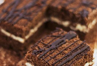 Fondere il cioccolato a bagnomaria e decorare con dei fili la superficie delle fette, fare solidificare.