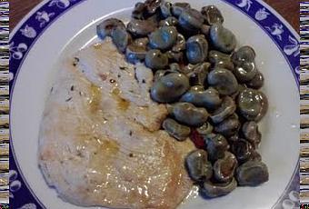 in un padella cuocere le fave con olio e cipolla soffritti pochissimoil peperone dolce secco ,un pochino di sale, pochissima paprika e un pezzettino di peperoncino