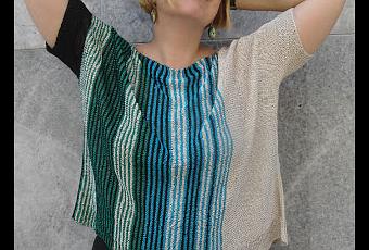 Una maglietta oversized, morbida e movimentata da sottili righe verticali, che snelliscono la figura.Facile da portare sopra dei pantaloni scuri o dei jeans, è anche molto elegante se abbinata ad una gonna scura.Il davanti e il dietro della maglietta sono uguali ma il motivo delle righe è diverso! Per cui sarà molto divertente indossarla in due modi diversi senza mai annoiarsi.