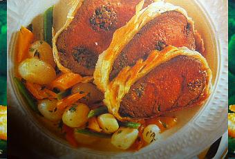 servite il filetto in crosta con il suo fondo e con contorno di verdure a piacere