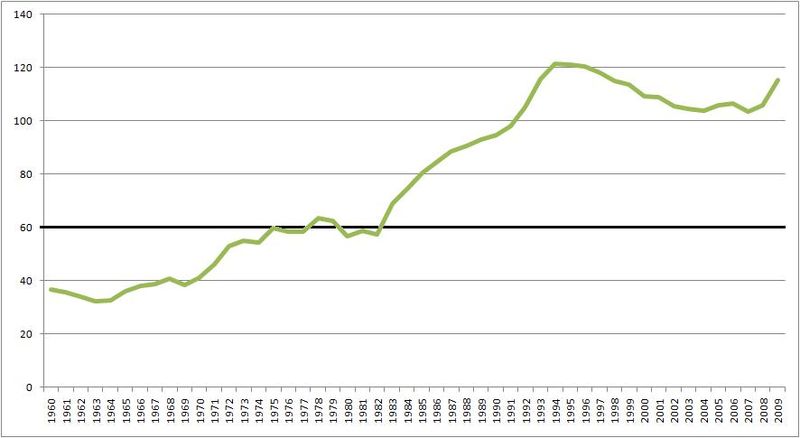 Ma dal 1980 in poi la situazione si è invertita (il costo del debito diviene maggiore della crescita del pil), e il governo avrebbe dovuto applicare all'istante tagli e tagli e tagli sulle uscite ingiustificate della spesa pubblica, creando un avanzo primario (saldo positivo fra entrate e spese pubbliche).