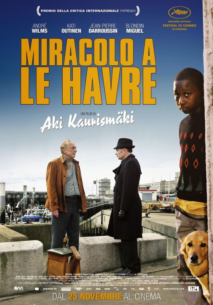 Marcel (Andrè Wilms) è un lustrascarpe di Le Havre che vive in un piccolo quartiere con Arletty (Kati Outinen) e il cane Laika. Le sue giornate fatte di duro lavoro e aperitivi al bar sono stravolte dalla malattia che colpisce l'amata moglie e dall'incontro con Idrissa (Blondin Miguel), un immigrato clandestino il cui unico scopo è quello di attraversare la manica per raggiungere la madre in Inghilterra. Marcel accoglierà il ragazzo in casa e con l'aiuto dei tanti amici del quartiere lo proteggerà dalle ricerche del commissario Monet (Jean-Pierre Darroussin) cercando di imbarcarlo su uno scafo diretto a Dover. Nell’epoca dei social network e delle connessioni eterne tra falsi amici, arriva dalla Finlandia un film piccolo ma pieno di speranza. Minimale ma ricercato, Miracolo a Le Havre restituisce al pubblico gli eroi buoni, gli angeli dalla faccia pulita figli di un cinema d'altri tempi. L'universo creato da Kaurismäki è saturo di generosità, i personaggi che popolano l'umile quartiere che fa da teatro alla vicenda sono in realtà elementi di un microcosmo legato da un forte sentimento di solidarietà, un tutto indivisibile dove il contributo di ognuno è necessario per far andare le cose nella giusta direzione. Il regista ripercorre le orme del cinema di Vittorio De Sica e Frank Capra in una sorta di esortazione al meglio che l’uomo può dare. Ad impreziosire il film c’è anche un cammeo di Jean-Pierre Leaud, che fu il passionario adolescente dei 400 colpi di François Truffaut, indimenticabile icona di ribellione e libertà.