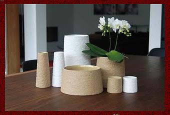 Gli elementi della linea Crepi sono disponibili in misure specifiche per il fiorista e nei colori primaverili bianco, naturale marrone-beige e lilla.