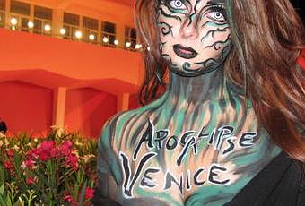 Una performance approdata poi davanti al red carpet della Mostra del Cinema dove la sinuosa Desiree ha attirato le attenzioni del pubblico e dei fotografi. Una iniziativa che attraverso l’arte del body painting ha voluto lanciare un segnale verso l’Apocalisse sociale di Venezia in cui mentre si susseguono eventi e manifestazioni di successo la città continua a perdere inesorabilmente abitanti. Apocalypse Venice è quindi una citazione del famoso film Apocalypse Now.
