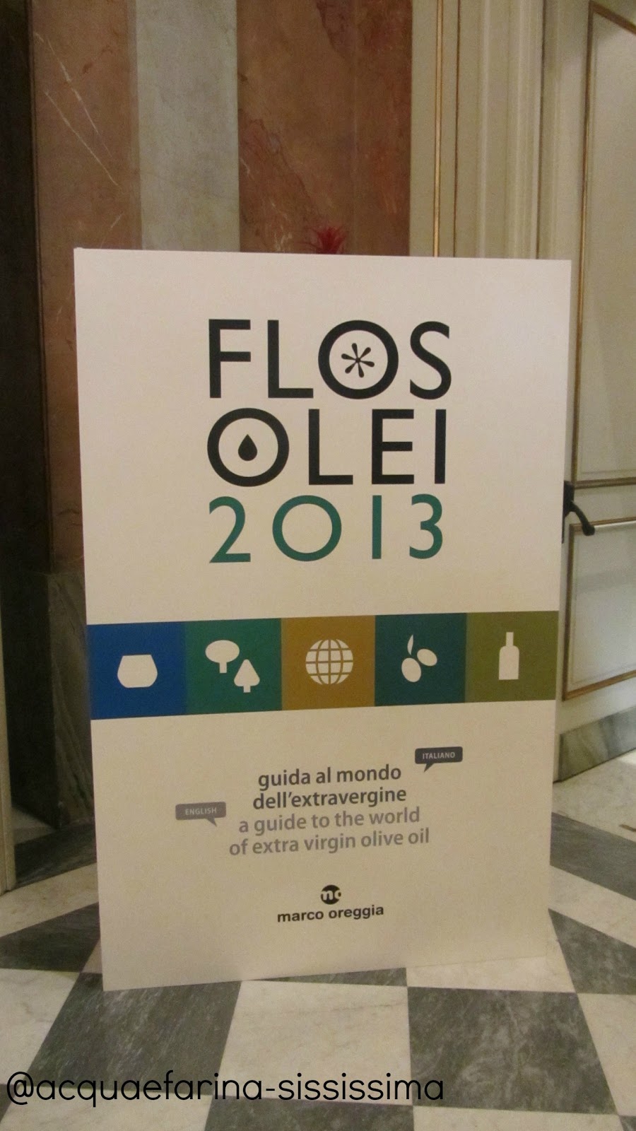 Nella splendida location del The Westing Excelsior, Via Vittorio Veneto n. 125, si è svolta domenica scorsa la presentazione della quarta edizione della guida FLOS OLEI 2013, l'unica guida mondiale in doppia lingua (italiano e inglese) esclusivamente dedicata all'olio extravergine di oliva. La mattina alle ore 11,30 c'è stata la conferenza stampa dedicata a giornalisti ed operatori del settore, con la spiegazione da parte degli autori, Marco Oreggia e Laura Marinelli, entrambi esperti assaggiatori di olio iscritti all'Albo, della legenda e sulle novità della guida e a seguire la premiazione THE BEST 20, riconoscimento che la guida dedica alle aziende che si sono distinte nelle varie categorie: