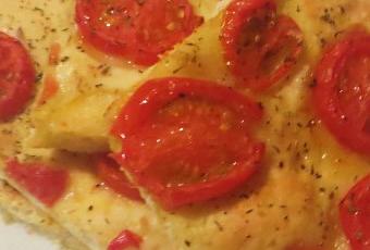 Ingredienti principali della ricetta:Potete variare questa focaccia sostituendo i pomodorini con sottili rondelle di patate o anelli di cipolla.