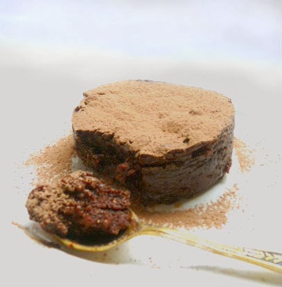 Ingredienti:- 260 gr. di cioccolato fondente 70% tagliato a piccoli pezzi- 300 gr. di panna 35% - 150 gr. di zucchero a velo- 2 uova- 2 tuorliProcedimento:Accendiamo il forno a 180 gradi. Versiamo la panna in un pentolino e mettiamo a bollire. Spegniamo subito prima che stacchi il bollore e versiamo sul cioccolato. Mescoliamo finchè il cioccolato non si sciolga del tutto e non sia ben amalgamato con la panna.In un recipiente mettiamo le uova e i tuorli, aggiungiamo lo zucchero e amalgamiamo con la frusta. Versiamo il composto nel cioccolato e mescoliamo bene.Imburriamo un anello da pasticceria di 20 cm. di diametro e lo appoggiamo su una teglia foderata di carta forno. Versiamo il composto e inforniamo per circa 30 minuti.Togliamo dal forno e lasciamo raffreddare. Sfiliamo l’anello e spargiamo del cacao zuccherato.Nota: io ho diviso il composto in 2 anelli da 10 cm. Il tempo di cottura resta invariato.
