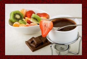 La fonduta al cioccolato è una ricetta culinaria semplice da realizzare e la sua degustazione avviene generalmente attorno ad una casseruola apposita denominata caquelon. I commensali prendono un pezzo di frutta con una forchetta da fonduta e lo immergono nel cioccolato fuso. Una volta ottenuta una copertura omogenea la forchetta viene estratta e la risultante può essere passata nel cocco o nelle arachidi preventivamente sminuzzate e polverizzate.