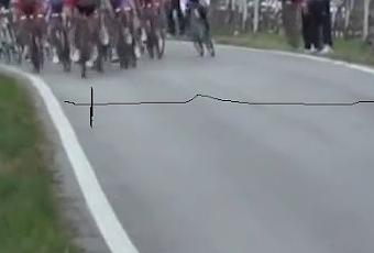 Questo fotogramma taglia la testa al toro .... a 150 metri dall' arrivo il corridore in secondo posizione ha tutto lo spazio per passare, il regolamento parla chiaro "è vietato qualsiasi cambiamento di traiettoria"