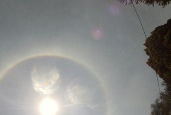 Un'aureola attorno al sole provocata da cristalli di ghiaccio presenti nell'atomosfera terrestre. E'questo lo spettacolo a cui hanno assistito questa mattina milioni di sudafricani. Un fenomeno raro che ha subito scatenato un tam tam sui social network. "Chi sa di cosa si tratta?". A spiegare la comparsa del misterioso anello ci hanno pensato gli astronomi del planetario di Johannesburg. "Si chiama halo ed è provocato dai minuscoli cristalli di ghiaccio presenti nelle nubi, quando entrano in contatto con la luce solare. Come l'arcobaleno non ha lunga durata e spesso annuncia l'arrivo della pioggia". Gli astronomi hanno anche sconsigliato dal guardare direttamente il sole spiegando che potrebbe causare danni agli occhi