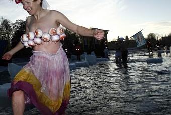 Come da tradizione anche quest'anno un centinaio di partecipanti si sono immersi nelle acque dell lago Orankesee in occasione del 27esimo carnevale del ghiaccio. Per sfidare il gelo i nuotatori si travestono con maschere colorate: dal panda al diavolo, dal clown alla cameriera sexy, tutti provenienti da scuole di nuoto tedesche