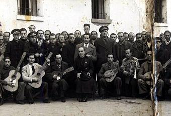 24 settembre 1940. Prigionieri repubblicani, in un carcere franchista, durante una "celebrazione" in occasione della giornata della Vergine della Misericordia. Nella fotografia si possono contare 55 persone. Sono tutti seri e dimagriti, e guardano preoccupati verso il fotografo. Tutti tranne uno, che sorride per i posteri: il prete!