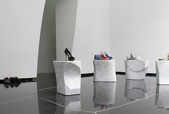 Uno spazio elegante e asettico, grazie a un concept progettato da Sergio Calatroni e lo studio Sc Artroom (Miyuki Yajima), dove spiccano espositori in marmo scolpiti e levigati a mano.