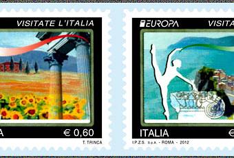 Poste Italiane comunica l’emissione, per il giorno 9 maggio 2012, di due francobolli celebrativi di Europa 2012: Visitate l’Italia, nel rispettivo valore di € 0,60 e € 0,75.