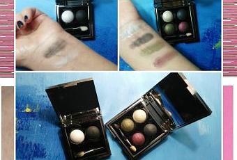 La palette più piccola composta da due cialde si chiama Glamour, sono ombretti cotti satinati e le cialde sono da 0,5 g ciascuna. La scrivenza sulla palpebra è molto buona ma è consigliabile un primer soprattutto per il colore scuro che così risulta più omogeneo. La texture è satinata ma una volta applicato sull'occhio il nero perde molto la luminosità diventando quasi mat mentre il bianco rimane molto luminoso.