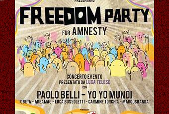 La musica italiana si mobilita per la causa della libertà in Nordafrica. Mercoledì 20 aprile, presso il Teatro Studio dell’Auditorium Parco della Musica, ci sarà una serata dedicata al vento di libertà che arriva dal Nord Africa e a sostegno di Amnesty International, l’organizzazione per i diritti umani che proprio quest’anno compie 50 anni. Freedom Party for Amnesty è un modo per raccogliere le energie creative e le idee su quello che sta accadendo a pochi chilometri da noi. L’onda inarrestabile di libertà che sta investendo quei paesi deve essere amplificata dalla musica che, da sempre, sa comunicare le emozioni alla gente comune. Grazie al supporto de Il Fatto Quotidiano, con la direzione artistica di Paolo Cobianchi, insieme all’Associazione Culturale Ticto, alla web agency Kiui, al sito di wish-lists Tivoglioregalare.it, a MusicaControcorrente e a ErrecomeRoma si esibiranno Paolo Belli, i Qbeta, gli Yo Yo Mundi, Areamag, Luca Bussoletti, Carmine Torchia e la Marcosbanda intervallati da interventi di grande interesse. Presentati dal giornalista de Il Fatto Quotidiano Luca Telese, sono previsti il portavoce di Amnesty International per l’Italia Riccardo Noury e altri ospiti d’eccezione. Un bellissimo momento di arte e di informazione ma anche un’ottima occasione per fare della beneficenza. L’intero incasso, infatti, sarà devoluto ad Amnesty International - sezione italiana - a supporto delle attività in cantiere per il 2011.