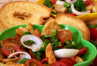 Bagniamo velocemente le friselle integrali Bontà di Altamura, le spezzettiamo, le disponiamo in ciotole quindi versiamo la dadolata di pomodori e il sughetto che si è formato, mescoliamo il tutto e lasciamo riposare per alcuni minuti prima di servirla.