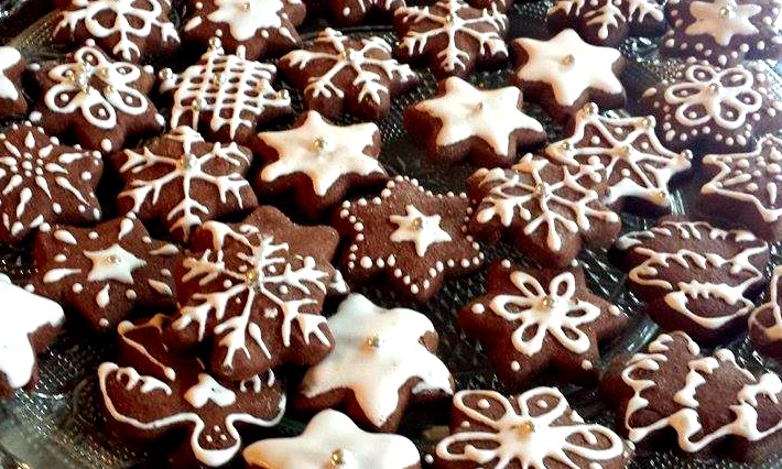 In una ciotola mettere il burro, lo zucchero setacciato, la polpa della vaniglia, la cannella e la scorza delle clementine. Montare con le fruste elettriche e aggiungere l'uovo e il tuorlo a filo, il cacao e la farina di risosetacciati. Continuare a miscelare con le fruste fino al rassodamento. Coprire l'impasto con una pellicola e asciare riposare in frigo per almeno 30 minuti. Stendere l'impasto con il mattarello e ricavare le forme desiderate con i tagliabiscotti. Per realizzare la "finestra": con un tagliabiscotti più piccolo asportare una porzione di pasta al centro del biscotto e riempire il foro con caramelle triturate prima di infornare. Disporre su carta da forno e cuocere a 180° per 15 minuti. Lasciare raffreddare e decorare con glassa a piacere.