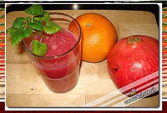 Ho spremuto il succo di un polpelmo rosa e di un melograno! Il risultato è un succo fresco, dissetante, acidulo tendente all'amarognolo. L'acido è dato dal pompelmo (io non aggiungo mai zucchero) e l'amarognolo è dato dalla pellicina del melograno che finisce nel succo!
