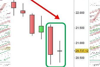 La candela ridotta non conferma né smentisce il messaggio originario dell’Harami cross bullish.