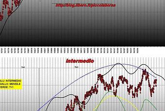 Si rimane sempre nell'incertezza sull'attuale collocazione dell'indice nel periodo intermedio. Inserisco ulteriori due battleplan . Il primo riprende l'ipotesi del 6 marzo , il secondo una nuova ipotesi che prevederebbe un ciclo intermedio complessivamente piu' corto ma con un t+1 in piu'. In entrambe i casi saremmo o staremmo entrando nella fase di maggiore debolezza del ciclo.
