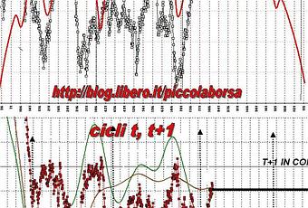 Dall'ultimo aggiornamento tutto sembra cambiato e invece non è cambiato nulla. Incominciamo con i cicli piu' corti , t e t+1. Tutto è aggiornato a metà seduta quindi i grafici mancano del ribasso del pomeriggio
