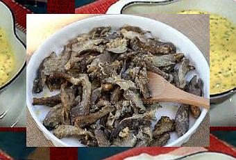 Facciamo sciogliere a fuoco dolce il burro, uniamo l’aglio e i funghi puliti.