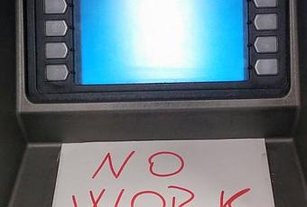 Poi ci sono i bancomat fuori servizio, che magari è uno stratagemma della Merkel per metterci alla prova e vedere, in caso di Grexit, come la prendiamo. Io ve lo dico subito: a me girano i coglioni perché non ho mai contanti con me e se l’unica volta in cui ho bisogno lo sportello non funziona l’esperienza utente del sottoscritto è pessima. Un paio di sere fa, all’aeroporto di Linate, c’era uno sportello bancomat non funzionante con appoggiato sopra un vistoso cartello scritto a mano su un foglio da stampante A4 con una arbitraria traduzione di fuori servizio in “no work”. Chi non lavora non prende i soldi, per dirla alla Celentano. Roba da matti.