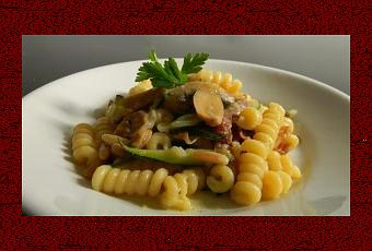 Olio in padella, funghi affettati, poca cottura, poi scansarli, metterci le zucchine a rondelle fine, rosolarle un po’, aggiungere i funghi e tre minuti prima di servire i dadini di speck, giusto per scaldarli e far diventare trasparente il grasso. Mettete la pasta scolata ma non troppo nella padella, saltatela qualche istante con anche il pecorino e servite.