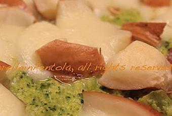 Il cavolo nero, o broccolo, praparato con una cipolla intera in padella, poi amalgamato con la ricotta, riesce a rimanere delicatissimo e la sferzata di energia viene data dalla soppressata saporita e dal retrogusto affumicato della provola.