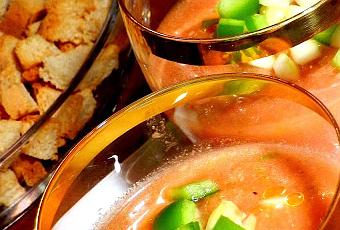 Guarnire con le verdure tritate e dei crostini, se lo si desidera. Servire il gazpacho freddo.