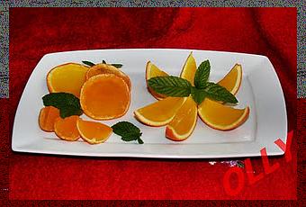 Filtrare il succo in un colino a maglie fini, dovrete ottenere 100ml di succo di ogni tipo di frutta.Con un coltellino eliminare dalle bucce la polpa e la parte bianca delle bucce. Mettere i fogli di gelatina a bagno in acqua fredda, Versare lo zucchero in un tegamino unire 100ml di acqua e fare bollire per 10 minuti a fuoco lento, per ottenere uno sciroppo limpido, eliminare la schiuma che si forma in superfice con un cucchiaio.